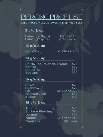 **Please note the piercers have different age requirements for younger children. You can find that information in their bios.